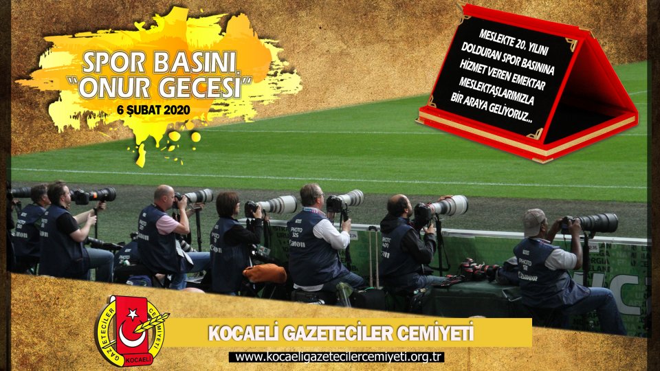 Spor Onur Gecesinde Buluşuyoruz Kocaeli Gazeteciler Cemiyeti 03 Şubat 2020 0 Meslekte 20.Yılını dolduran spor basınına hizmet veren emektar meslektaşlarımızla bir araya geliyoruz... Spor Basınımızla Buluşuyoruz