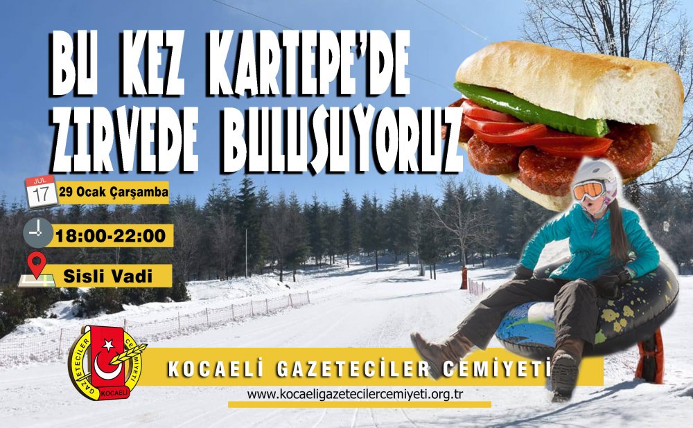 Cemiyet üyelerimizle birlikte bu kez Kartepe Zirve'de Sisli Vadide buluşuyoruz. Karın tadını üyelerimizle birlikte çıkarıyoruz.Eğlenmek ve güzel dakikalar geçirmek isteyen üyelerimiz ön rezervasyon için Hakan Süer ve Emrah Erdoğan'a isimlerini yazdırmaları gerekmektedir. 29 Ocak Çarşamba günü yapılacak etkinliğimiz için İzmit Sabancı Kültür Merkezi önünden saat 17.30 da araç kaldırılacaktır.